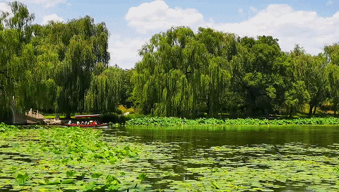 在海淀,游园赏荷成为不少人夏日生活的一部分。作为水景园,在圆明园水上观荷更具意境。在长春园海岳开襟码头乘船,泛舟荷花幽深处,看锦鲤游弋,闻香气醉人,可谓“菱叶萦波荷飐风,荷花深处小船通