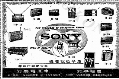 日本索尼公司在此前一年开发了第一台全晶体管袖珍收音机,体积非常小,这是一项全球性的商业成功,改变了“一家一台收音机”的局面,进入了“一人一台”的个人消费电子时代。