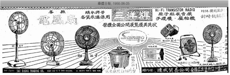 图注:1958年三洋电机在香港推出系列产品,包括收音机