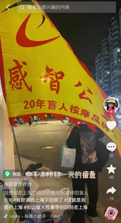 王亮亮印象最深刻的是,一个五十岁左右的大姐每周都需要去西藏南路按摩,来回都要乘地铁外加20分钟步行,后来女儿教会她怎么刷抖音后,这位大姐无意间刷到了感智盲人按摩,过来体验之后她特别高兴,以往往返一个多小时,如今只需要步行10分钟。