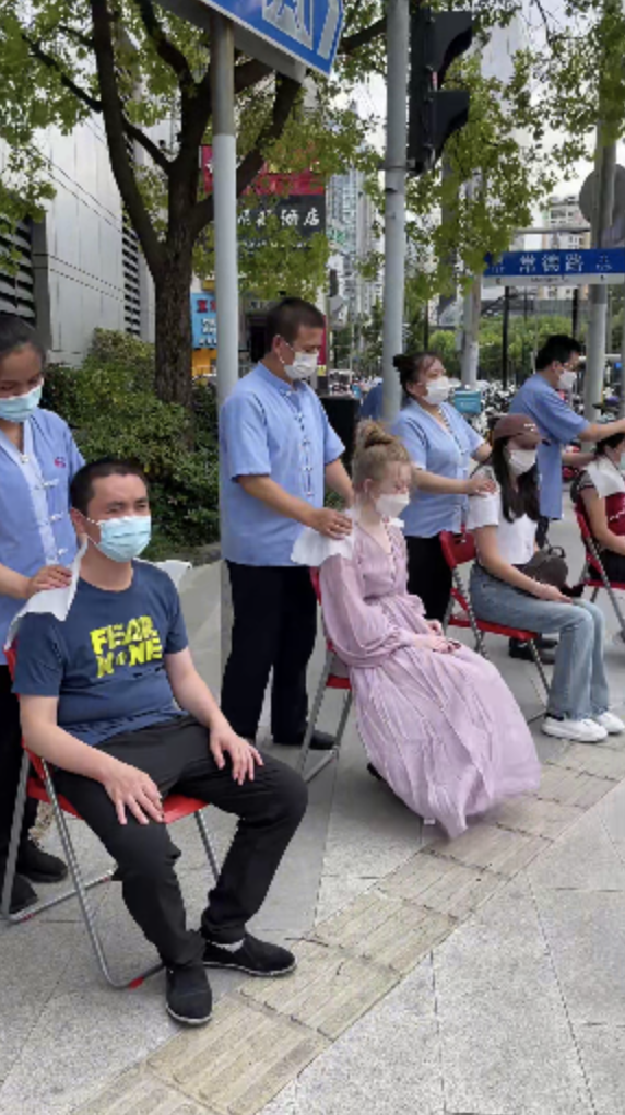 除了线上加大宣传渠道之外,王亮亮还在地推上下足功夫。每天傍晚时分,王亮亮带着同事在路边或者江边摆摊,推出“29.9元30分钟的肩颈按摩”体验,结果生意好得出乎意料。王亮亮说,他们选择走上街头,不光为了招徕客户,更是为了回馈在两个月的封控中帮助视障群体走出困境的市民们。
