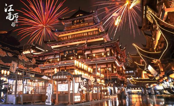 除了美术风格极具传统意味,《江南百景图》也与线下的传统建筑相互联动。去年春节期间,随着“松江府”的上线,上海市民熟悉的豫园被复刻到游戏中。值得一提的是,整个灯会期间,游戏里的“豫园”都和线下同步,每天17时30分准时亮灯。现实中的九曲桥,则被《江南百景图》主题的彩灯装点一新,桥头桥尾各是一座写着“江南百景图”的牌坊。