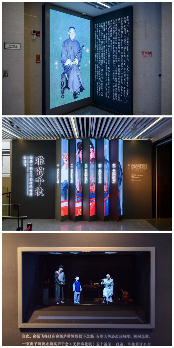 为让观众了解少年俞振飞如何步入昆曲之门,展览设计新媒体幻影成像展品《雏凤声清》追忆往事:俞振飞三岁丧母,为使俞振飞入睡,俞粟庐每晚哼唱《邯郸梦·三醉》之【红绣鞋】作为摇篮曲。俞振飞六岁时,俞粟庐在家课徒授曲,教的正是【红绣鞋】,学生总学不会。俞振飞在旁哼唱,居然一字不差。俞粟庐吹笛,令俞振飞试唱。从未学过唱曲的俞振飞唱得一字不差,让父亲大为惊奇。《雏凤声清》采取“实景造型”和“幻影”的光学成像结合的技术,整个演示过程中,观众不需要戴3D眼镜就可达到裸眼3D效果。