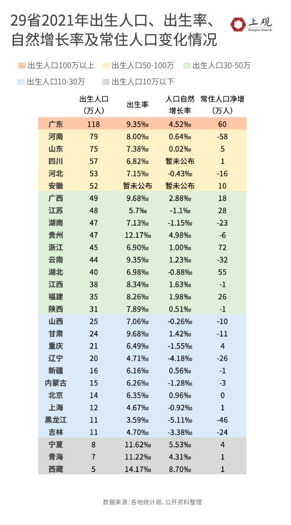 从数据来看,除了天津、海南的数据还没出炉,各地在“生娃”这件事上都不太乐观。