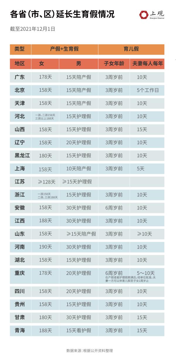 自去年三孩政策正式出台以来,全国多个省份都纷纷修改计划生育条例,出台延长育儿假、产假等措施。