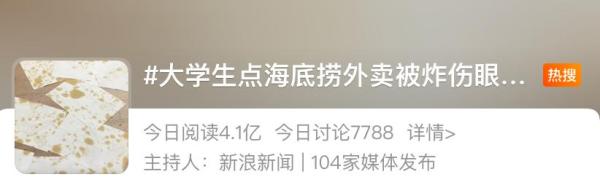 8月19日,杭州一名大三学生称在外卖平台上点了一份海底捞,吃的时候突然炸锅,导致眼角膜上皮剥脱。该同学表示,煮了也就十几分钟,就爆炸了,炸得到处都是辣油。