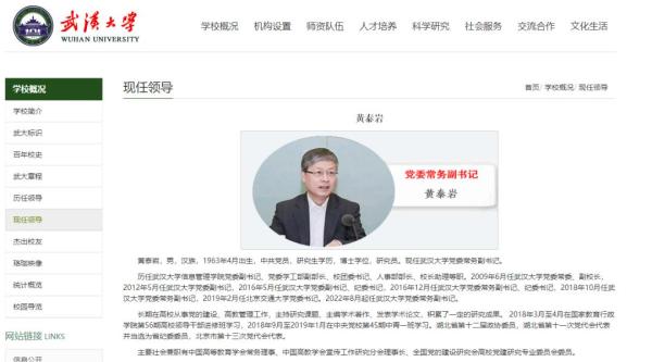 近日,武汉大学、中国地质大学(武汉)领导班子有调整。记者浏览两校官方网站获悉,黄泰岩已任武汉大学党委常务副书记。唐忠阳同志任中共中国地质大学(武汉)委员会委员、常委、副书记、纪律检查委员会书记。
