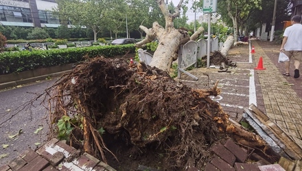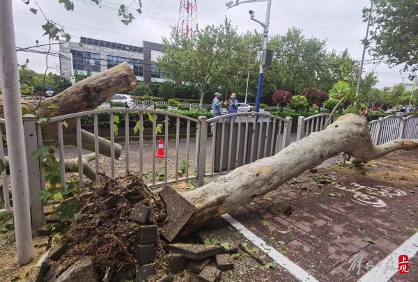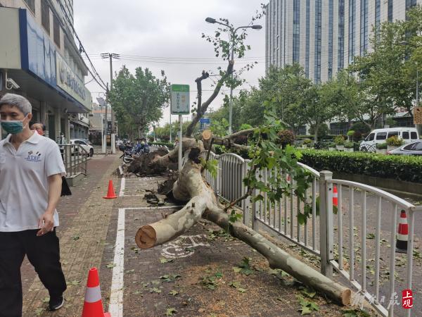 2022年9月15日,受台风“梅花”影响,淞宝路上两棵大树被狂风刮倒,工作人员将影响行人的树干切割后运走,保障道路通畅。 栏目主编:张春海 文字编辑:张驰 图片编辑:张驰 编辑邮箱:8903168@qq.com 上观新闻 张海峰 摄影报道