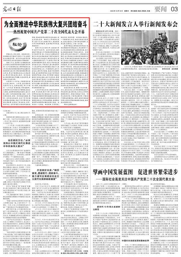 举国关注、举世瞩目,中国共产党第二十次全国代表大会10月16日在北京隆重开幕。在党的二十大召开之际,新华社刊发重磅评论,人民日报、光明日报、解放军报、经济日报等央媒均刊发社论,热烈祝贺大会开幕。