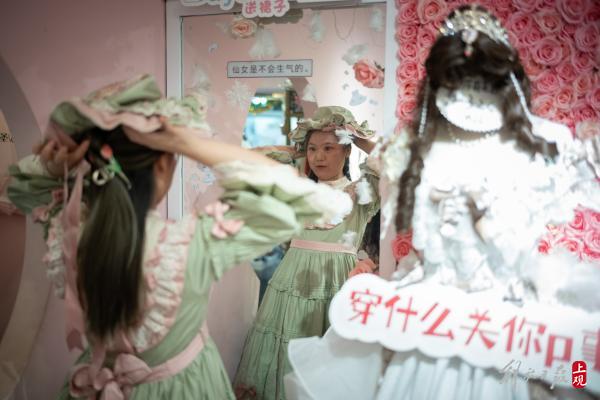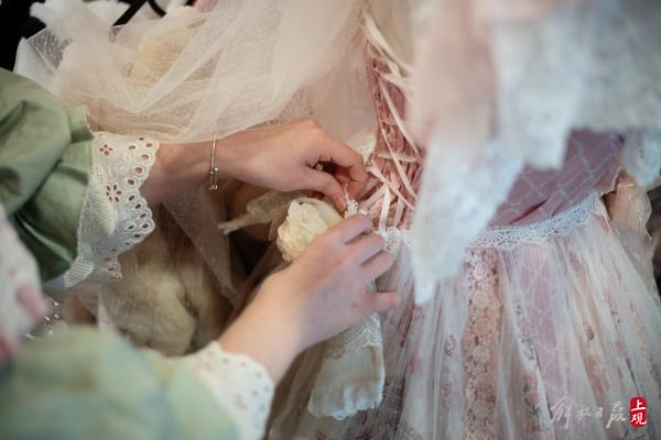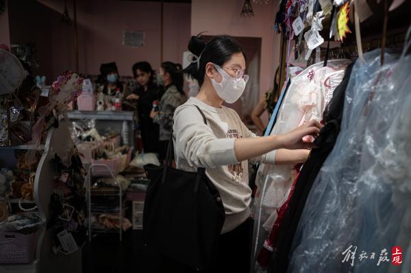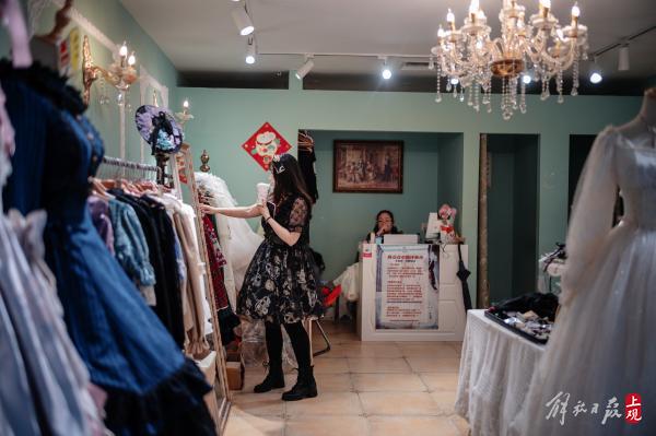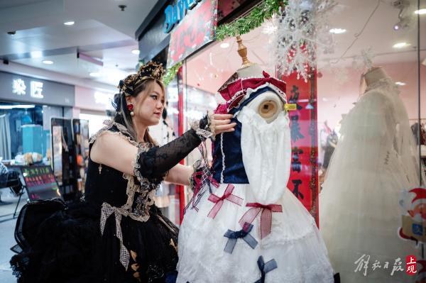 还有一些上了年纪的上海阿姨也会来店里试衣。巧克力说:“当听到客人感慨衣服便宜的时候,我心里还挺自豪的。洛丽塔裙也好,汉服也好,制作工艺常常很繁复,有些蕾丝甚至要手工来制作。客人来到店里,看到实物,再看到定价,就自然会知道实体店价值了。”