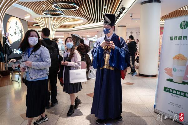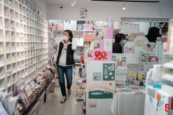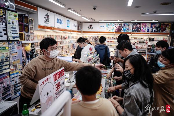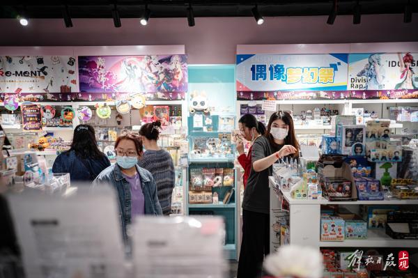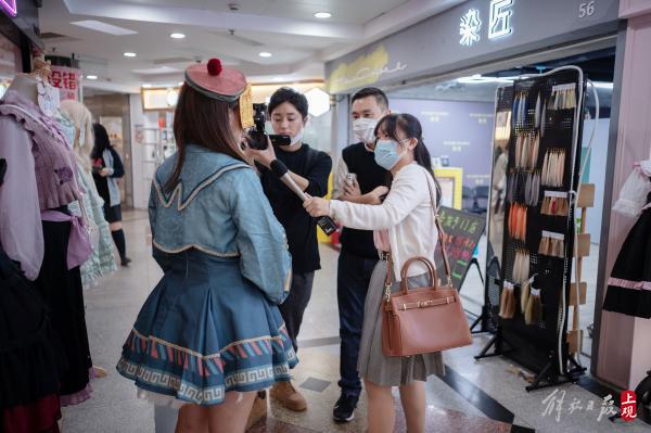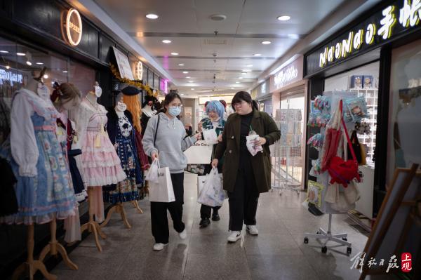 高桥参加过B站的线下嘉年华活动,对中国的三坑文化有所了解。来到迪美,商店里动漫二次元文化和日本JK制服让他眼熟,但仔细一看,这里的三坑服饰,已经充满了浓浓的中国元素,这又让他觉得很新鲜,“之前知道国潮风流行,没想到和日本的流行文化也结合在了一起,真是有趣。”