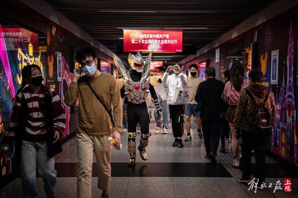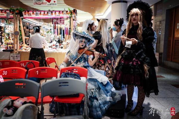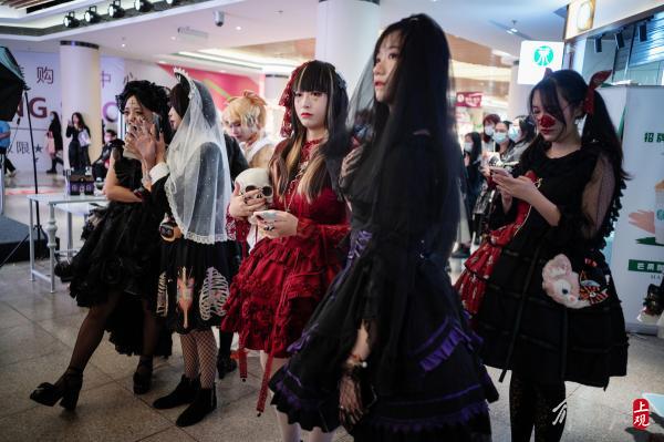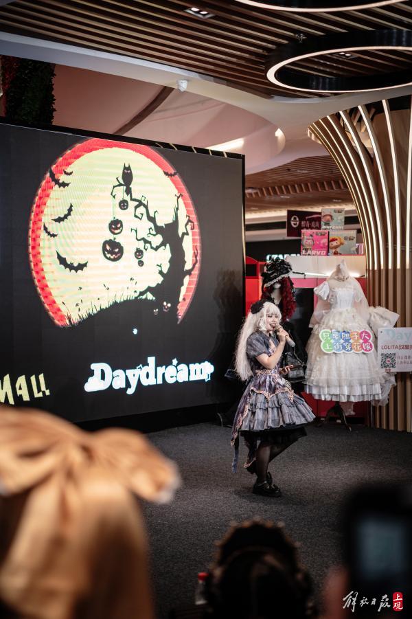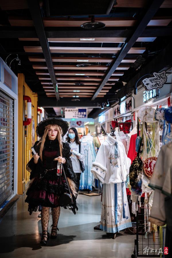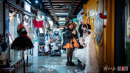 人气向着迪美中心的舞台不断聚集。动漫风、汉服风、洛丽塔套装、JK制服……年轻的男女们身着奇装异服,在迷宫般的地下街市里穿梭而来。这条号称“三坑少女破产一条街”的商业群落,因为万圣节的主题,显出了一丝迷人的“妖气”。