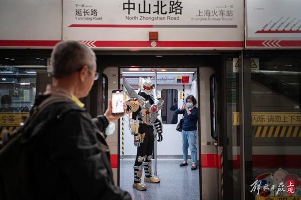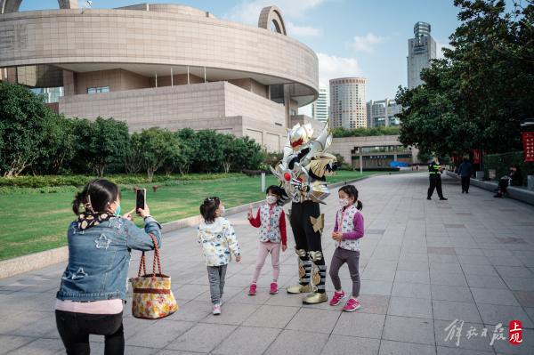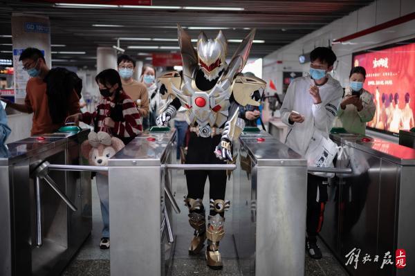 一路上,有人叫他奥特曼,有人说他来自外太空,也有懂经的同好会大喊“铠甲勇士”,DD君照单全收,友好地和关注他的路人摇摇手,老人孩子要上前合影,他来者不拒。