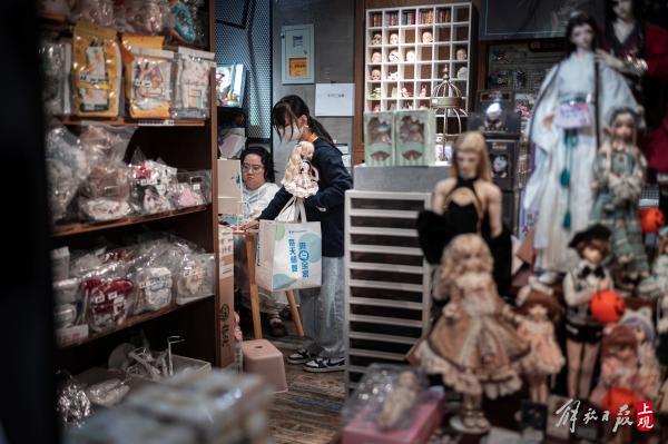 动漫周边、BJD娃娃、文具手帐、三坑服饰、撸猫馆、剧本杀、美发店……各种时髦有趣的小店一间间搬来,短短一年不到的时间,迪美摆脱了原本“破产一条街”的危局,成了三坑少女、动漫发烧友们心中的“破产一条街”。