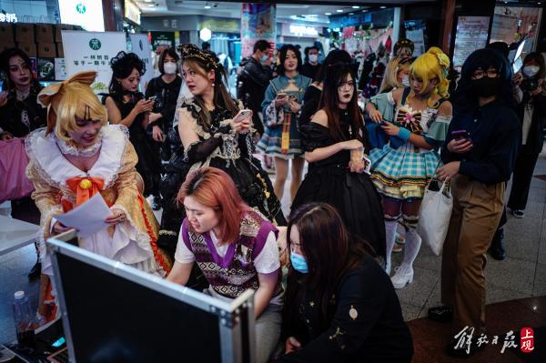 DD君的出现炒热了活动前的场子。有路人凑过来与他合影,也有穿着日漫服装的少女来和他摆出架势“对线”。