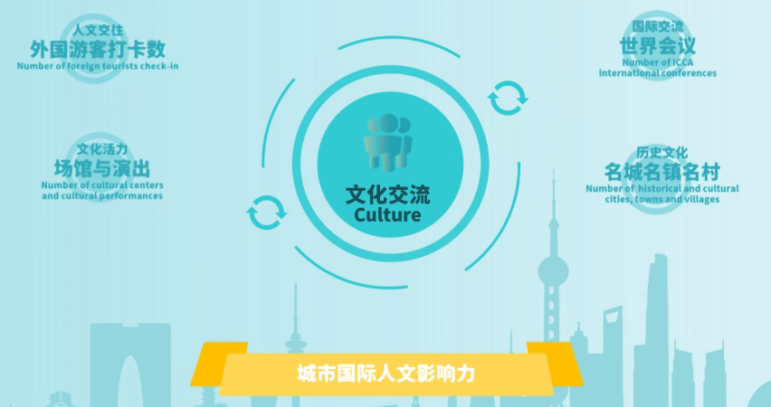 在国际竞争中,最具城市标识的莫过于文化,而文化底蕴的积累绝非一朝一夕之功。文化交流维度,主要反映一座城市的国际文化影响力,包括外国游客、世界会议、场馆与演出、名城名镇名村等指标。