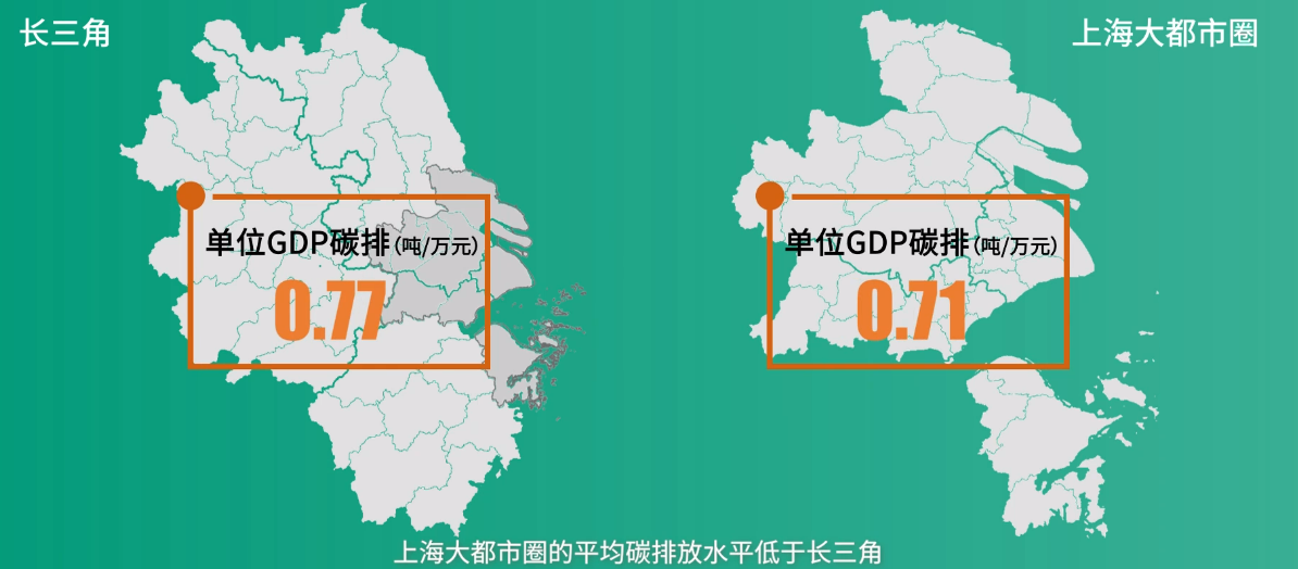 上海大都市圈拥有较强韧性和引领性,但是薄弱环节也有待改善。解放日报·上观新闻记者从上海大都市圈规划研究中心了解到,今年,相关研究人员选择以“绿色低碳”角度深入研究发现,上海大都市圈的平均碳排放水平(0.71个单位GDP碳排)低于长三角(0.77个单位GDP碳排),引领了区域的高质量发展路径。