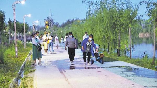 2021年,泽普县投资4000万元,建成了东西长3.8公里、占地1300亩的法桐水乡公园,宽敞整洁的步道,绿植与灌木交错,五颜六色的花朵烂漫绽放,让人赏心悦目,为群众提供了一个集休闲、娱乐、健身为一体的生态公园。每天都有众多居民在这里休闲健身,尽情享受绿色生态带来的美好生活。