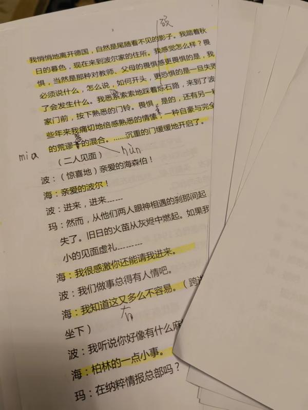 娄际成还想登台。“我想做一场告别演出,为自己的舞台生涯画上句点。” 他花了一年时间整理话剧《哥本哈根》,修改了七次的剧本用三号字打印出来,还涂写了各种细节标记。