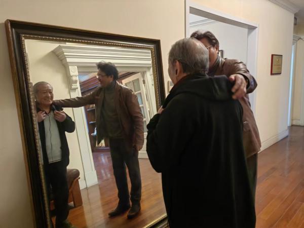 在演员剧团一楼的穿衣镜前,佟瑞欣扶着娄际成的肩膀,帮他整一整上衣领口,像在做登台前的最后准备。娄际成看着镜中的人影笑了: “我非常感谢你们。”