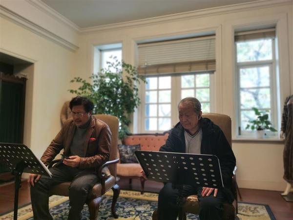 录制完《哥本哈根》,天色已经暗下来,外面渐渐升起寒意。娄际成走出录音棚,正遇上来录制《牛虻》的老艺术家达式常。“娄老师是我们的老大哥,当年青话的剧我们都要去看。”两人站在门口,交流起录制心得来,他们曾经合作登台演出,如今都已年过八十,依然为热爱艺术的那颗心驱动着,在各自的领域里继续努力创作。