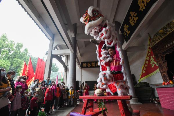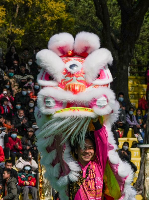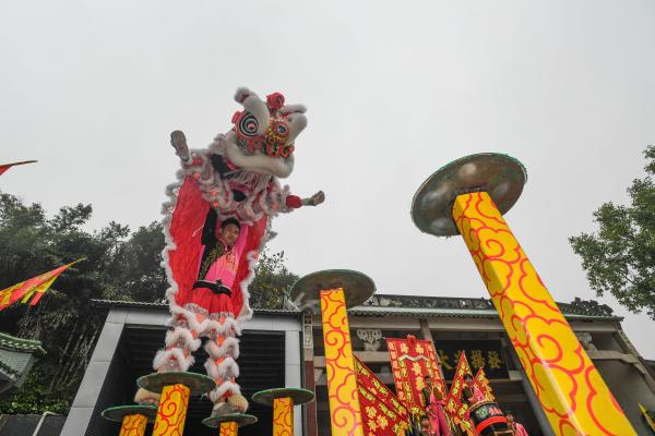 ↑2023年1月24日,春节期间,狮团在南海西樵山表演醒狮贺新春。