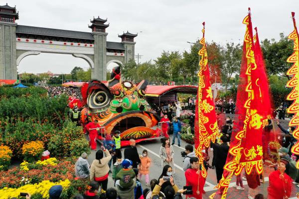 ↑2023年1月12日,高4.68米、宽4.5米的“狮王”狮头被请到西樵山牌坊。