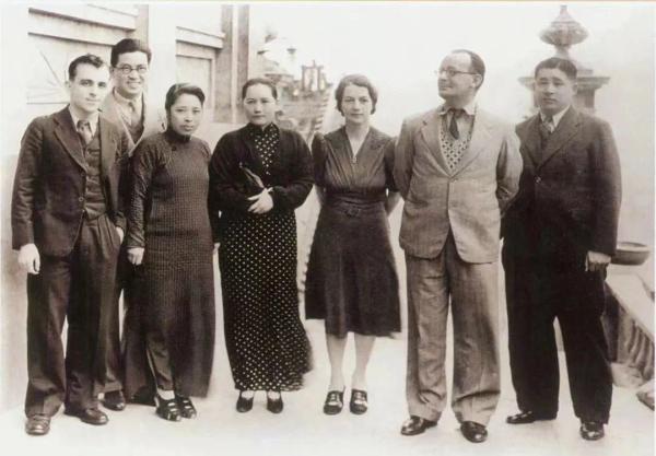 1938年6月,宋庆龄在香港发起组织保卫中国同盟。照片中,宋庆龄与保卫中国同盟中央委员合影,左起第一位是伊斯雷尔·爱泼斯坦,最右边是廖承志。