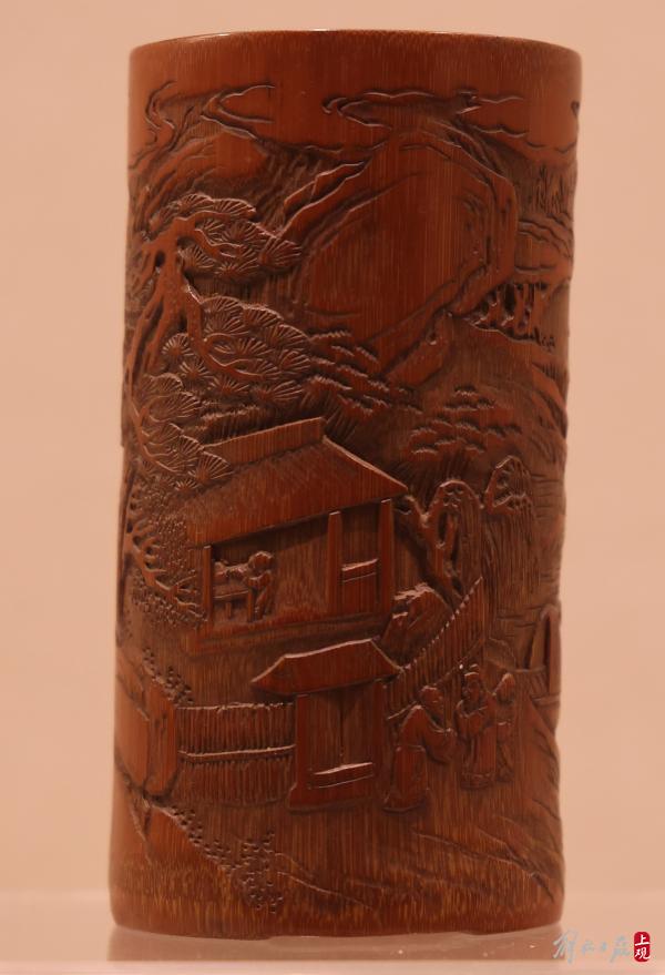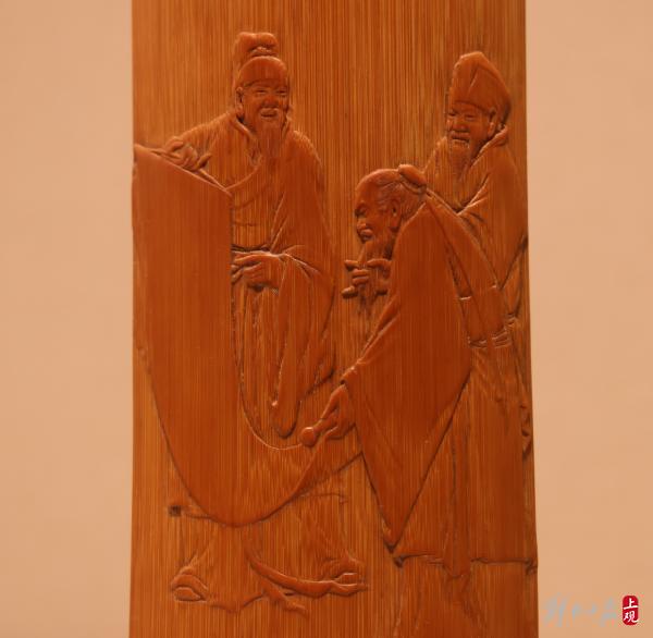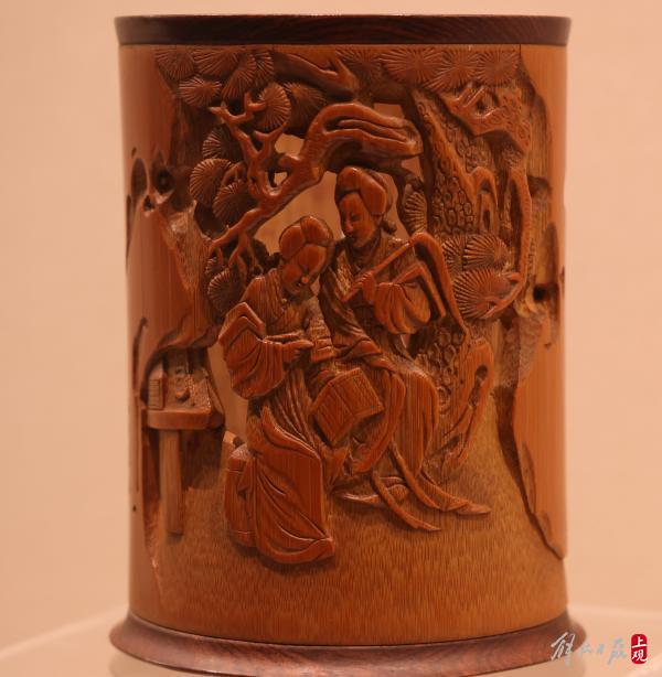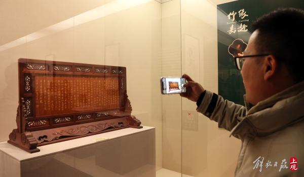 当日,“竹缘嘉趣——王威艺术作品展”在嘉定博物馆举行。竹刻,是嘉定的一张重要名片。竹刻作品呈现出竹之高雅风韵,此次展出160多件各种艺术作品。嘉定竹刻承袭了竹文化之菁华,以竹为载体,展现出传统文化的雅趣。