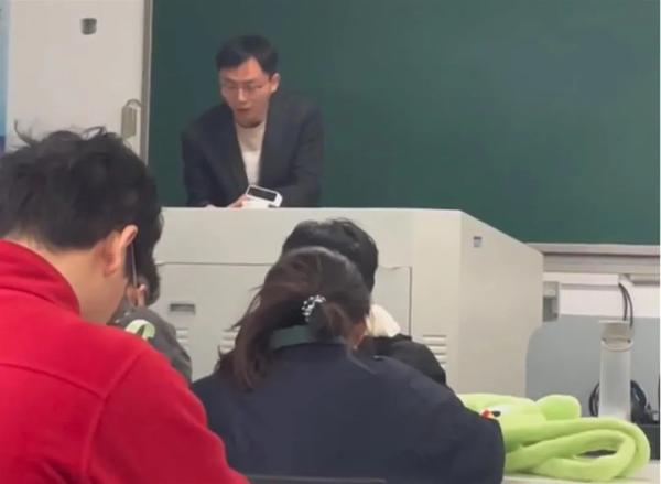 拍摄视频的学生表示,张老师教动物遗传方面的课程,“他讲课很棒!”