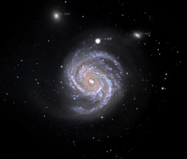 3月27日4时左右,谷神星进入M100旋臂(水兄/Stellarium模拟)