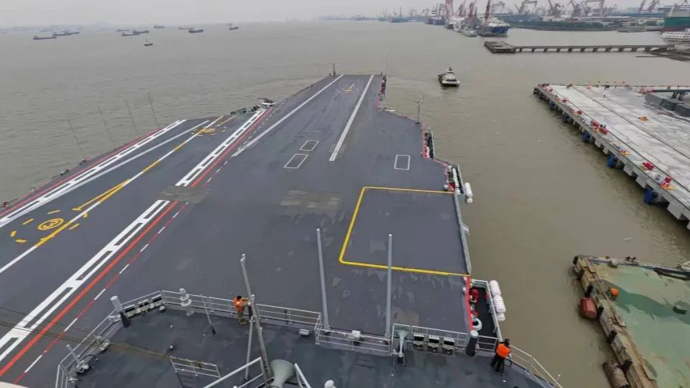 台湾“中时新闻网”的报道称,福建舰可与当今世界最先进航母相媲美,建造水平无疑是当下常规动力航母的“天花板”。福建舰离开码头进入海试,证明前期的系泊实验很充分很成功。